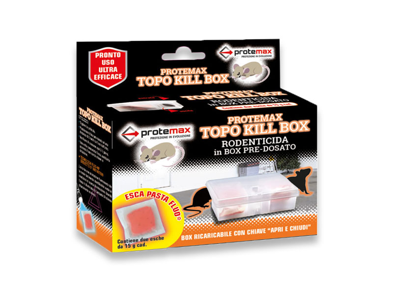Pronta all'uso, con 2 esche in blocco da 15g (Brodifacoum 0,0025 in pasta fluorescente). Per interno