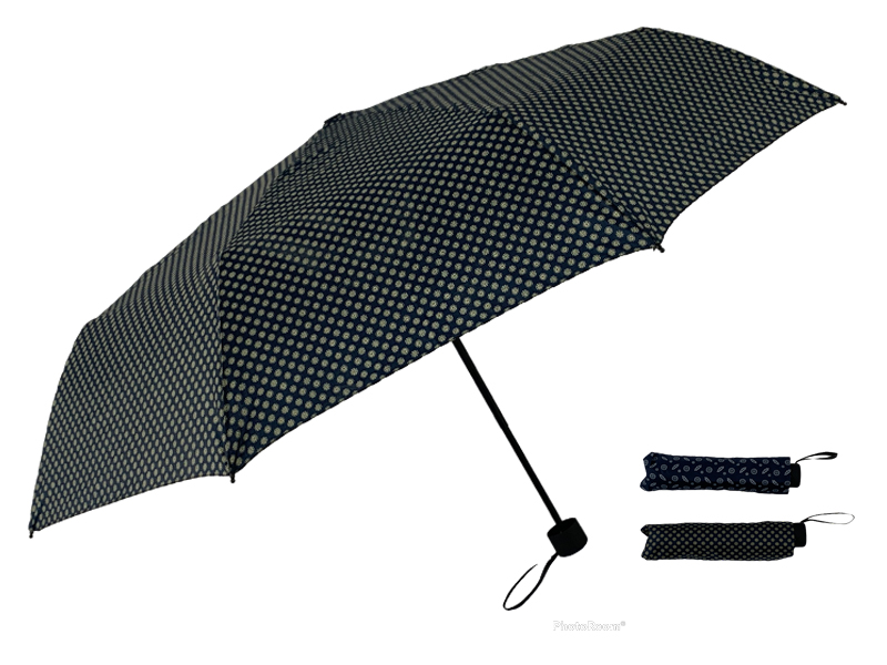 In microfibra 12 stecche. Impugnatura gommata, stecche in fibra di vetro. Manico telescopico a 3 sezioni. Apertura manuale con pulsante di sicurezza. Colori misti. Dimensioni: cm 53,5 - chiuso 24 - Ø 5.5 cm.