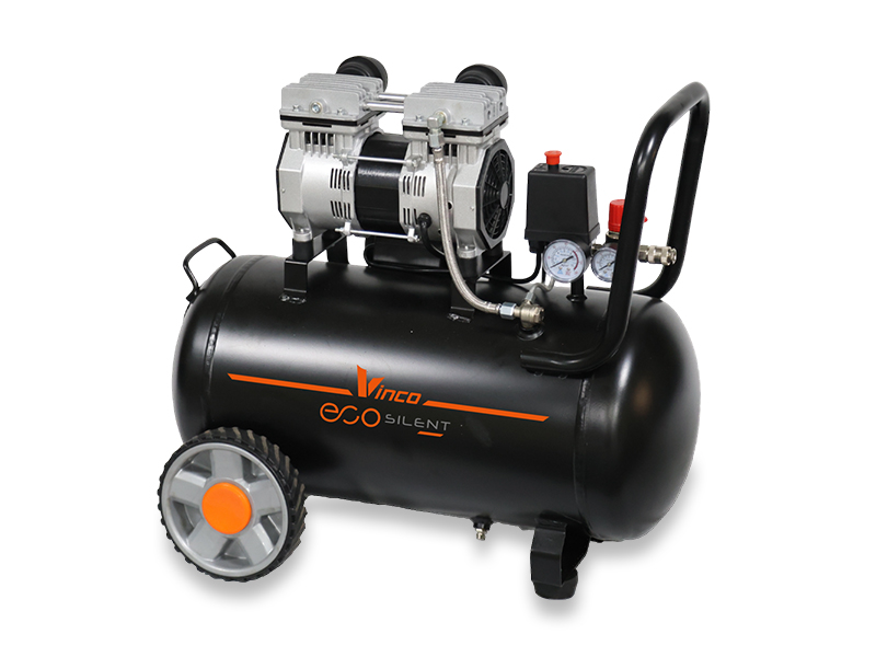 Super silenziato, solo 59dB di rumorosita. Potenza: 1.10kw(1.50HP). Aria aspirata: 160L/min. Giri motore(r.p.m): 2800. Pressione Max: 8bar(115psi). Dim: 695x325x605h mm. Peso: 26kg.