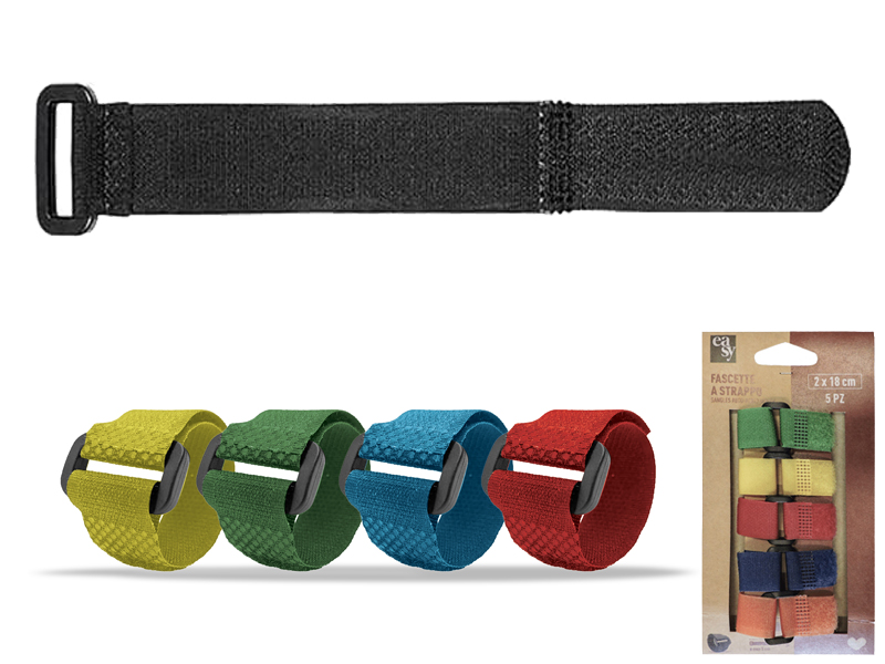 Blister con 5 fascette stringicavo velcro in colori assortiti da 20x180mm.