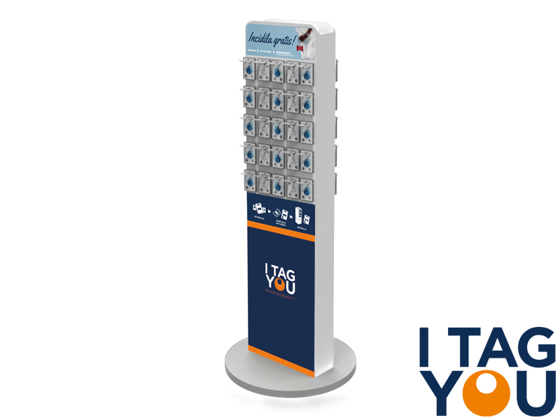 girevole, con 50 ganci per esporre l'assortimento scelto.