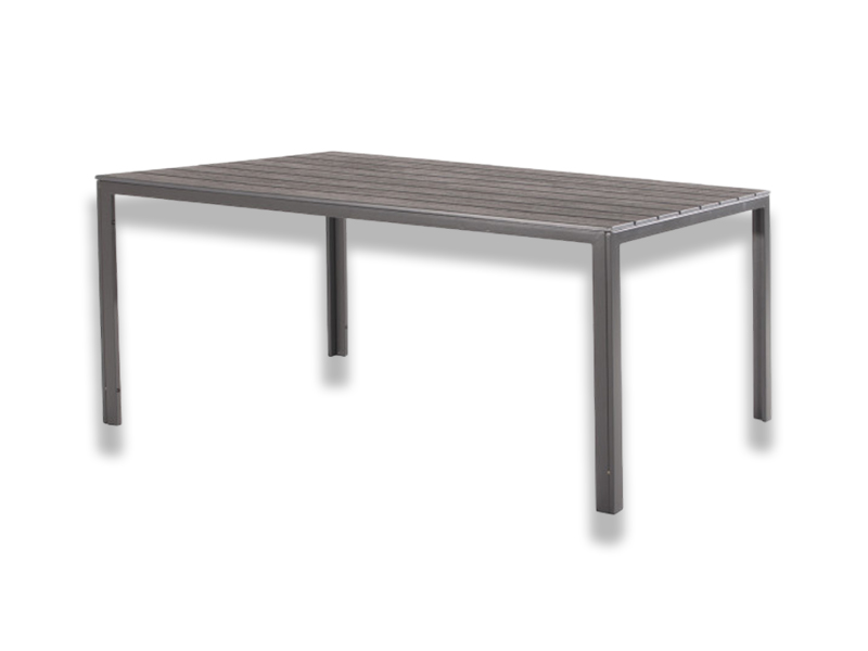 Top in HDPE effetto legno e struttura in metallo verniciato. Dimensioni 156x78x74h cm.