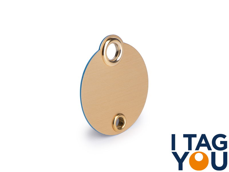TARGHETTA ITagYou KRCIRCLEGB Tonda Oro, Scritta Blu