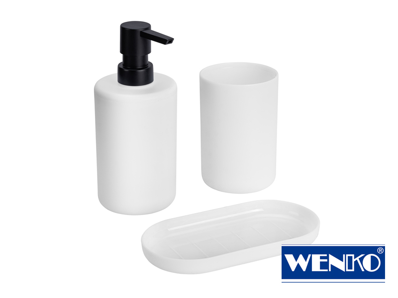 Set da bagno 3 pezzi Fano, bianco (dispenser, bicchiere e porta sapone). Polipropilene.