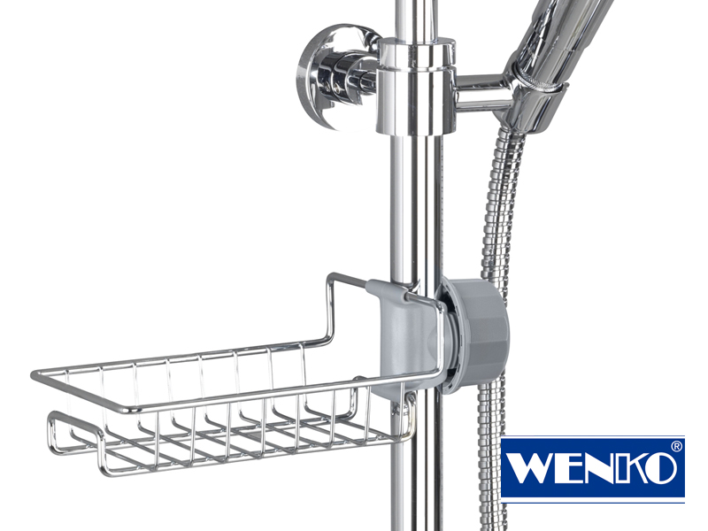 Portaoggetti doccia in acciaio inox, adatto a aste diametro 18-25 mm, fissaggio facile senza viti o trapano. mod. Miramas (anche per la canna del miscelatore cucina)